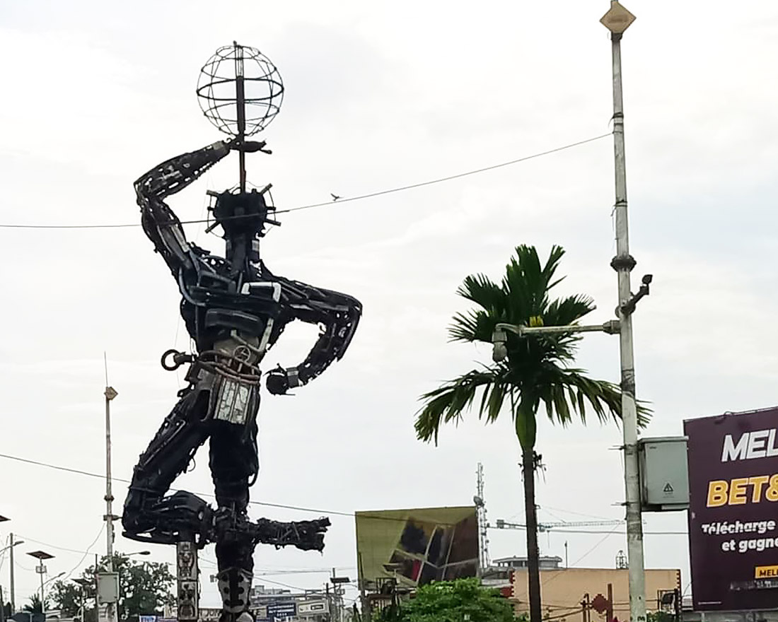 A historical monument at Rond-Point Deido, Doula, symbolizing the city (photo by Ludovic Bakebek, 2021)
