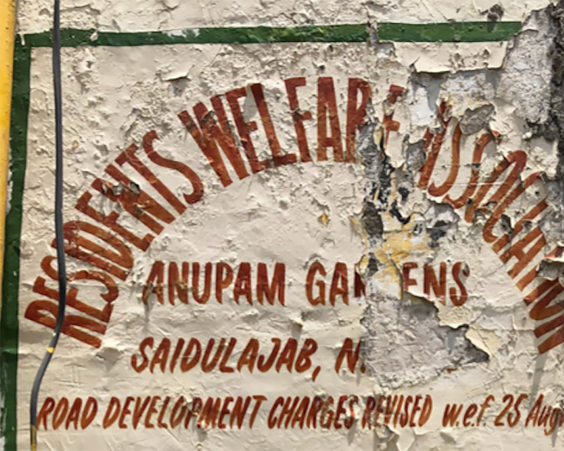 A detail from rate charts for commercial vehicles at the entry gates of Sainik Farms, Delhi. These charts are put up by two of the Residential Welfare Associations in Sainik Farms (photo by Vivek Mishra, 2022).