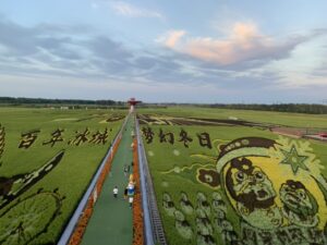 “Rice Field Art“ (稻田画) on the outskirts of Harbin in Northeast China, where multi-colored rice varieties are used to create large-scale images for tourists to take pictures and post on social media.” (Photo: Xuefei Ren)